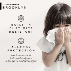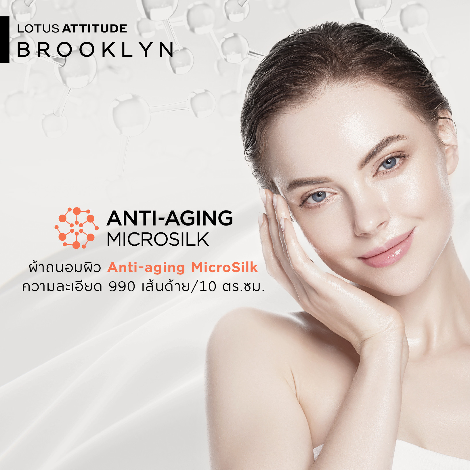 หมอนอิง LOTUS ATTITUDE รุ่น Brooklyn Cushion มอบผิวสัมผัสเรียบเนียนไร้รอยยับด้วยเทคโนโลยีผ้าถนอมผิว Anti-aging MicroSilk ทอด้วยความละเอียด 990 เส้น/10 ตร.ซม. ให้สัมผัสที่อ่อนโยนต่อผิว ไม่เกิดริ้วรอยที่เกิดจากการกดทับหรือเสียดสีกับผ้าหุ้ม พร้อม Aloe Vera Tech ที่ปรับผิวสัมผัสของเนื้อผ้าให้นุ่มลื่นสบายคล้าย Aloe Vera Gel พร้อมเสริมความเย็นบนผิวสัมผัสของผ้าให้เย็นยิ่งขึ้น และยังมีโครงสร้างระบายอากาศของผ้าหุ้ม Airflow System ช่วยแก้ปัญหาเรื่องความอับชื้น ให้มุมพักผ่อนของคุณสดชื่นและผ่อนคลายอยู่เสมอ ทั้งยังช่วยป้องกันการสะสมของไรฝุ่นที่เป็นปัญหาของสุขภาพได้อีกด้วย