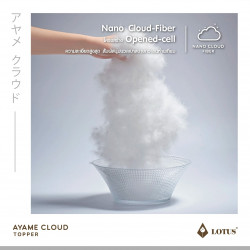 AYAME CLOUD TOPPER ท็อปเปอร์ปุยเมฆหนานุ่มด้วยเทคโนโลยีพิเศษในการผลิตให้ได้ เส้นใย Nano Cloud-Fiber โครงสร้าง Opened-cell ความละเอียดสูงสุด ดุจดั่งใยของปุยเมฆ สัมผัส นุ่มนวลเบาสบายกว่าขนห่านเทียม พร้อมทั้งประสิทธิภาพในการระบายอากาศที่สมบูรณ์ให้ความชุ่มชื่น ต่อผิวแต่ไม่อับขึ้น อีกทั้งสัมผัสได้ถึงความเย็นสบายด้วยผ้าหุ้ม Microtex ความละเอียด 330 เส้นด้าย/10 ตร.ซม. พร้อมผิวสัมผัส 3 มิติ ด้วยเทคโนโลยี Emboss ในการสร้างลวดลายที่มีเอกลักษณ์เฉพาะตัว