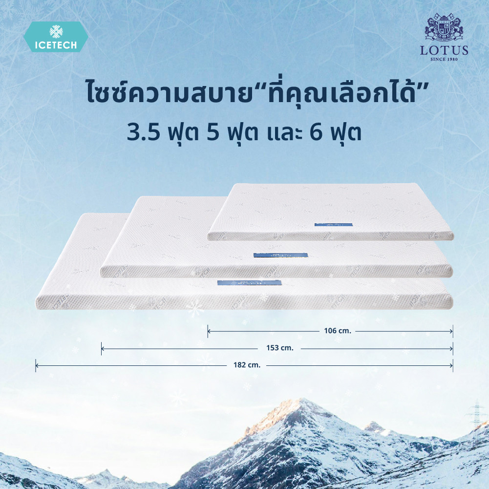 มอบความเย็นสบายด้วย ICETECH knit fabric ผ้าหุ้มที่ผสานเจลเย็นลงในเส้นใย จึงทำให้สัมผัสถึงความเย็นที่ยิ่งกว่าผ้าหุ้มทั่วไป ช่วยปรับอุณหภูมิร่างกายให้เหมาะสมแก่การนอน และช่วยลดความอับชื้น ให้คุณนอนหลับสนิทต่อเนื่องยาวนานเพื่อการมีสุขภาพที่ดีขึ้น