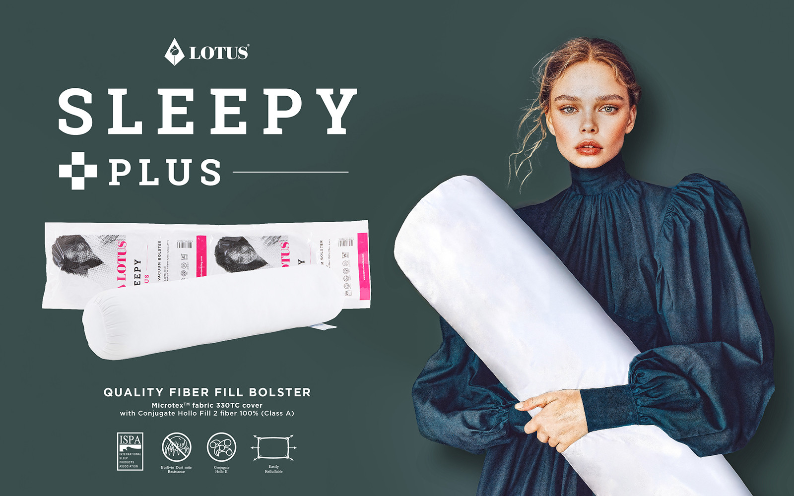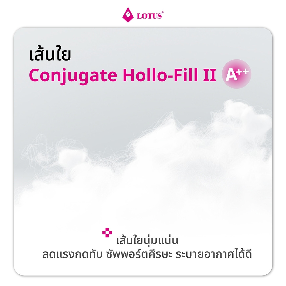 หมอนข้าง LOTUS รุ่น Sleepy Plus อัปเกรดความสบายตลอดการพักผ่อน เพิ่มชั่วโมงหลักลึกยาวนานไปกับสัมผัสนุ่มแน่นด้วย Conjugate Hollo-Fill ll เส้นใยสังเคราะห์เกรด A++ นวัตกรรมความสบายที่คิดค้นมาเพื่อบรรเทาความเมื่อยล้า เสมือนหมอนกอดคู่ใจที่ให้ความรู้สึกสบายตัวในทุกท่วงท่าการนอน และปกป้องสุขภาพด้วยการรองรับทุกสัดส่วนของร่างกายได้อย่างสมดุล จัดระเบียบท่านอนให้ถูกต้องตามหลักสรีรศาสตร์ ทั้งยังช่วยการไหลเวียนเลือดได้อย่างมีประสิทธิภาพ และป้องกันการนอนกดทับบริเวณแขน เมื่อนอนตะแคง